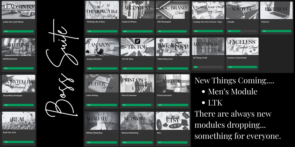 Boss Suite™ is continuously updated with new modules, income streams, and trainings, so you’re not learning something once and being left behind as the online space changes.