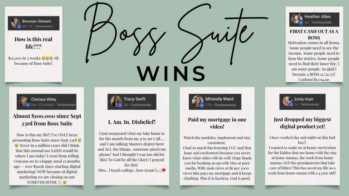 Boss Suite™ is first and foremost an education and systems ecosystem. Some members choose to participate in the optional affiliate program after enrolling, but it’s not required and results vary. Any income opportunity depends on your effort, consistency, and how you choose to use the training.