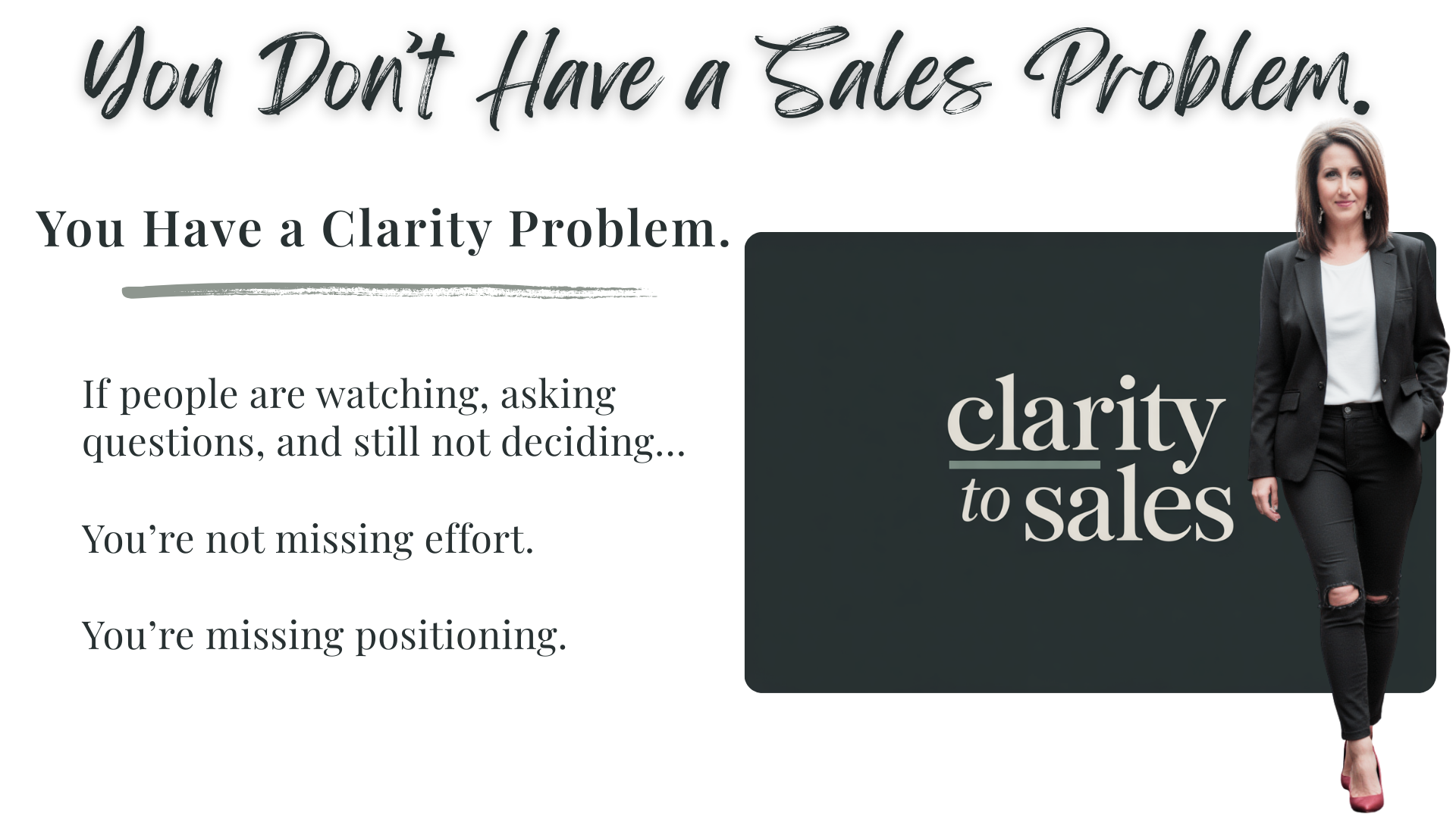 Clarity to Sales focuses on why buyers hesitate in the first place.